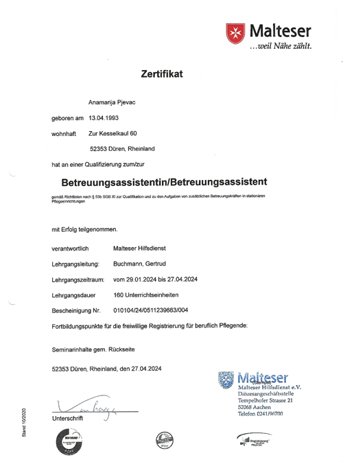 • Qualifikation Anamarija Pjevac